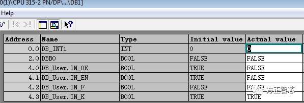 现在我们来看看三个概念:DB块数据视图中变量的初始值、变量的实际值和DB块在线后显示的变量的实际值。