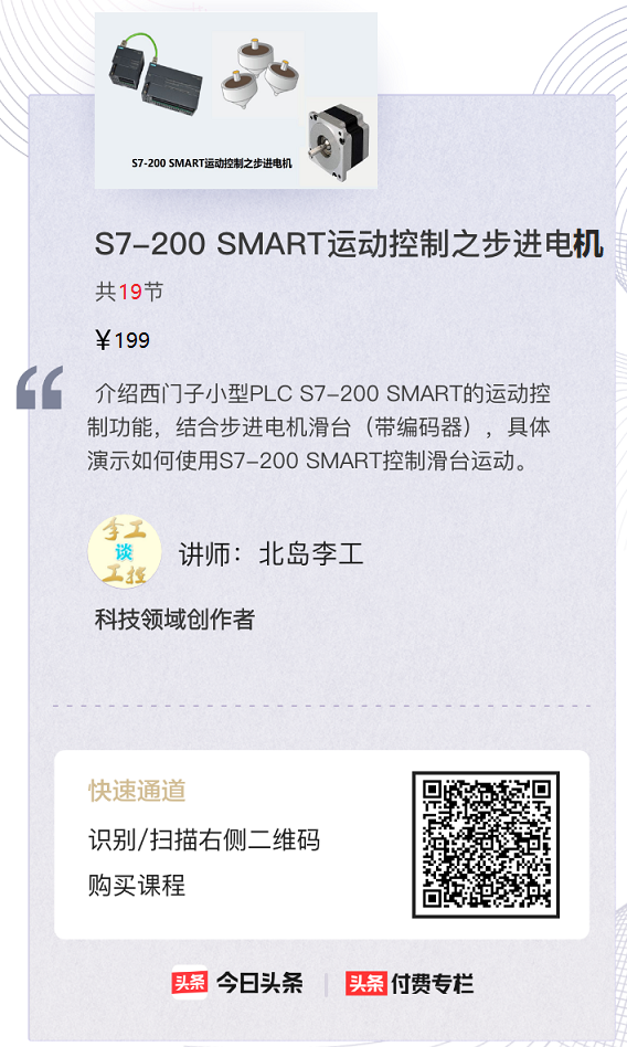 本课程是西门子S7-200 SMART的运动控制的课程,控制的对象是步进电机。